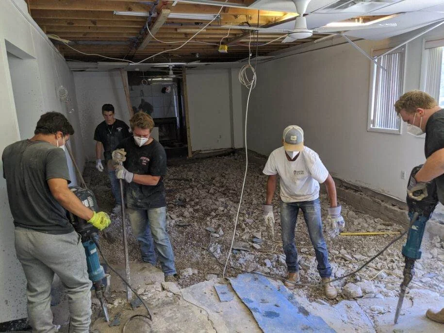 New epoxy mosaic floor for Rochester Community Inclusive Rowing boat house for wounded veterans